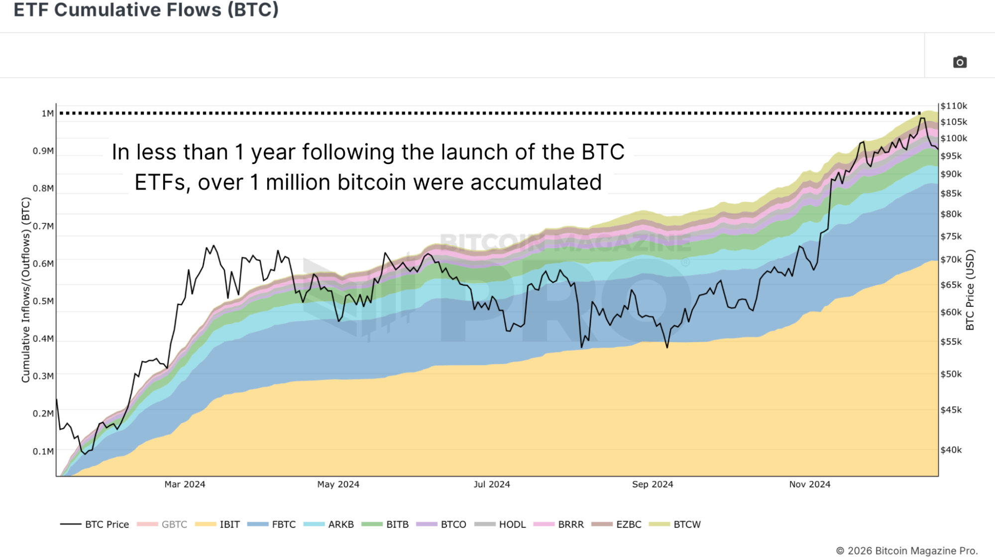Figure 2: Since their inception, ETFs have accumulated over 1 million bitcoin.