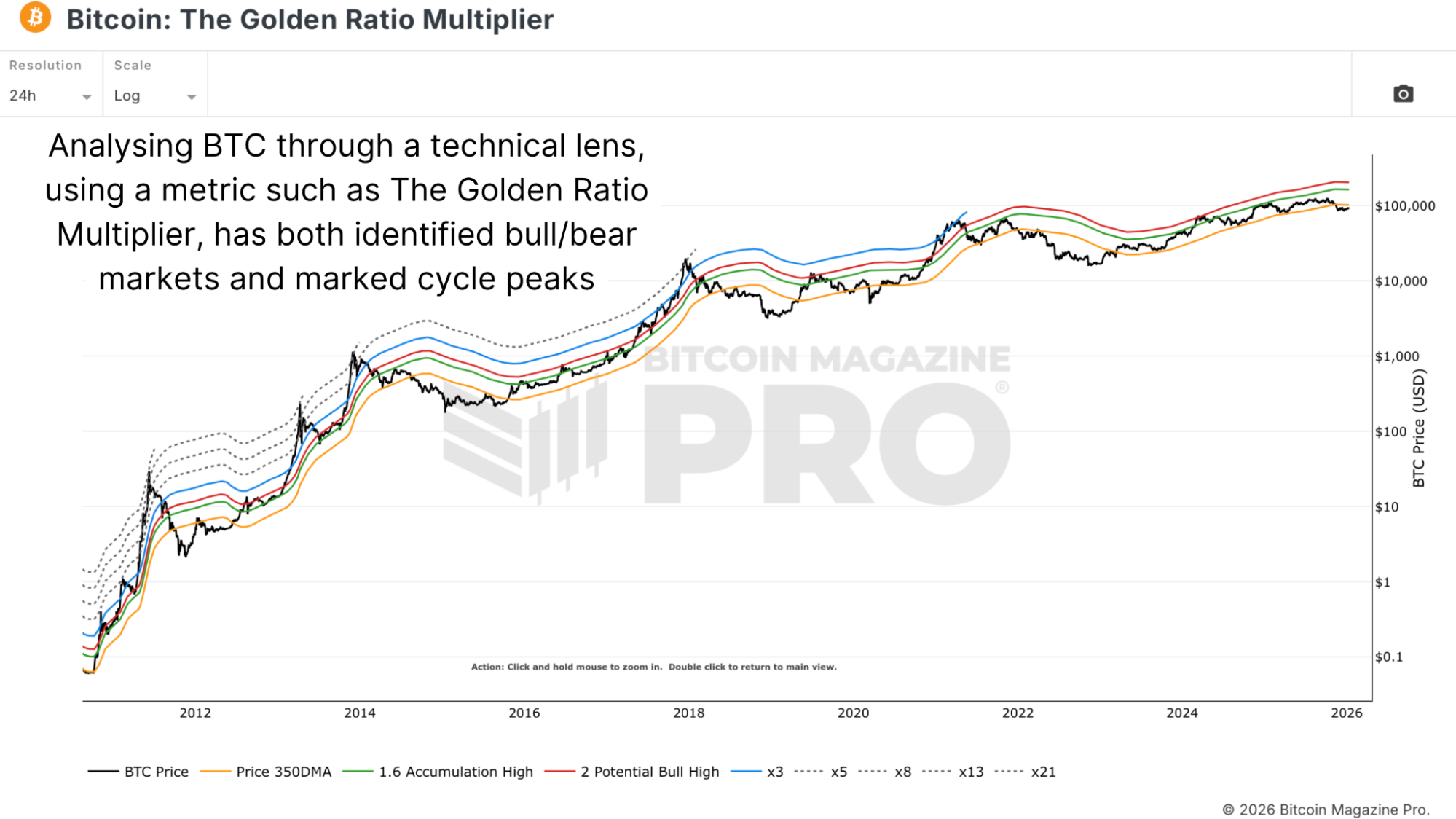 Figure 1: Illustrating Bitcoin’s price 350DMA with Golden Ratio and Fibonacci Sequence multiples.